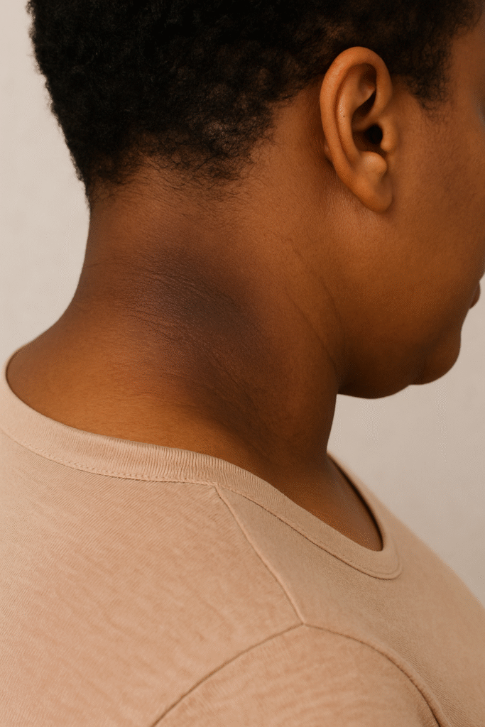 - Dark velvety skin around the neck 👤often indicates insulin resistance.
