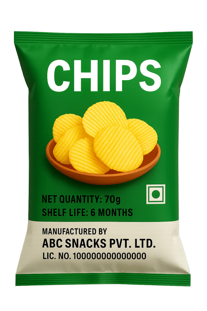 - Basic details → Every food label displays the product name, ingredients, net weight, shelf life, grade, vegetarian/non-vegetarian logo, country of origin, manufacturer details, and food safety authority approval.