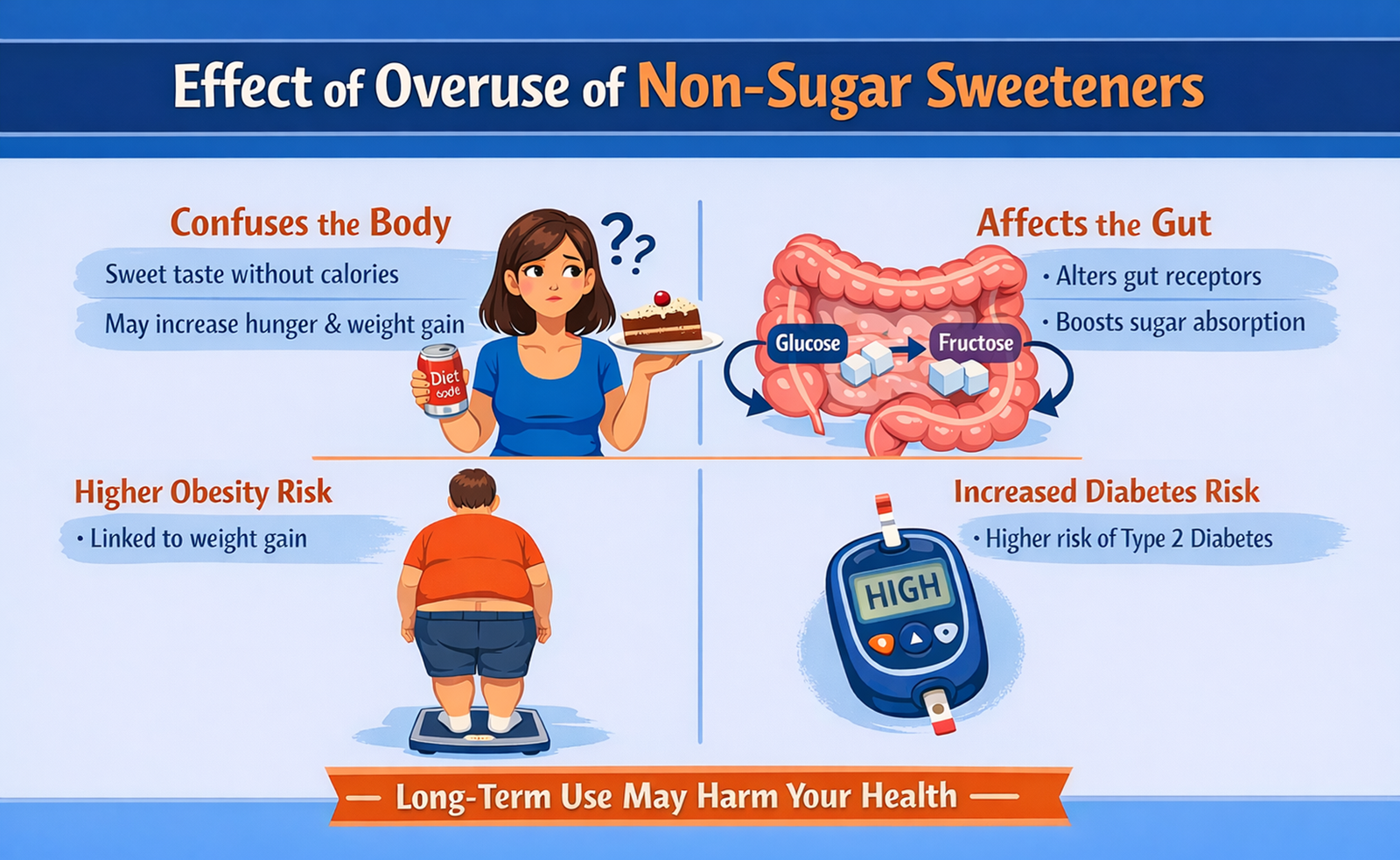 - Non-sugar sweeteners can help reduce added sugar intake when used in moderation. However, frequent or excessive use may not provide additional health benefits and could influence appetite, taste preferences, or overall food choices in some individuals.